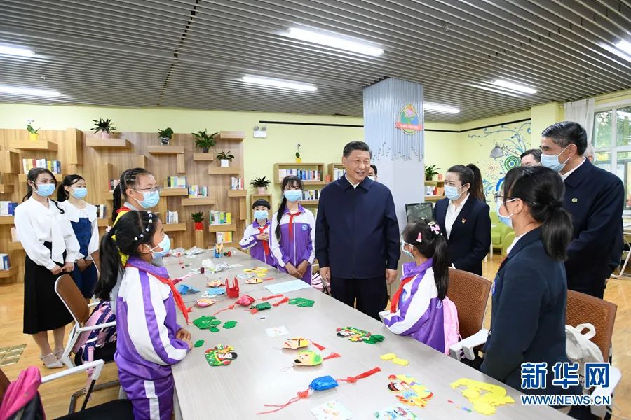 2021年6月7日至9日,习近平在青海考察。这是7日下午,习近平在西宁市城西区文汇路街道文亭巷社区阅览室,了解社区向青少年提供公益性课后托管服务情况。新华社记者 李学仁 摄