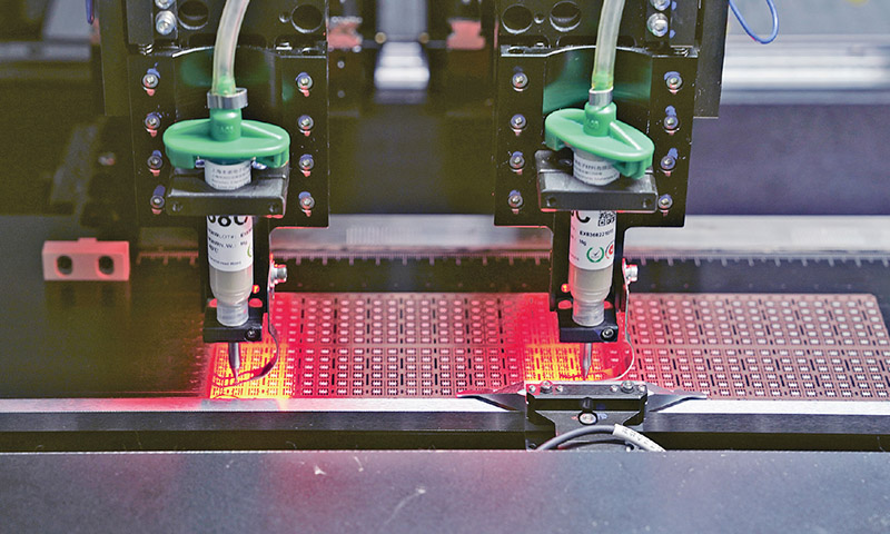 制造业是推动产业转型升级的主阵地。近年来,安徽省蚌埠市依托“微电子机械系统”领域的传统优势,积极打造智能传感产业,力争实现产业智能化转型升级。图为2022年11月30日,位于蚌埠的安徽禹芯半导体科技有限公司的智能传感器控制芯片生产线。 新华社记者 杜宇/摄